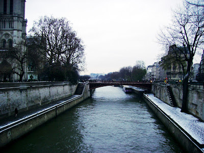 Hoje, porém, resolvemos deixar o nosso iglu e fomos caminhar pela cidade, apesar dos termômetros estarem marcando sensação térmica de -6º C. Quando passávamos pelo gramado principal da Cité Internationale, que mais parecia uma pista de esqui, um grupo estava brincando de guerra de neve. Ao chegarmos perto, fomos bombardeados pelas granadas brancas. Era o nosso amigo argentino Gonzalo e mais três japoneses que resolveram tirar o dia para se esquentarem correndo por aí. Não ficamos para participar da brincadeira, porque queríamos ver se o Sena estava congelado. Chegando à Rive Gauche, vimos que o rio ainda possuía forma líquida, ao contrário da neve das suas margens. Às cinco horas da tarde, eu não aguentava mais ficar na rua, então acabamos o dia num restaurante quentinho do Quartier Latin.